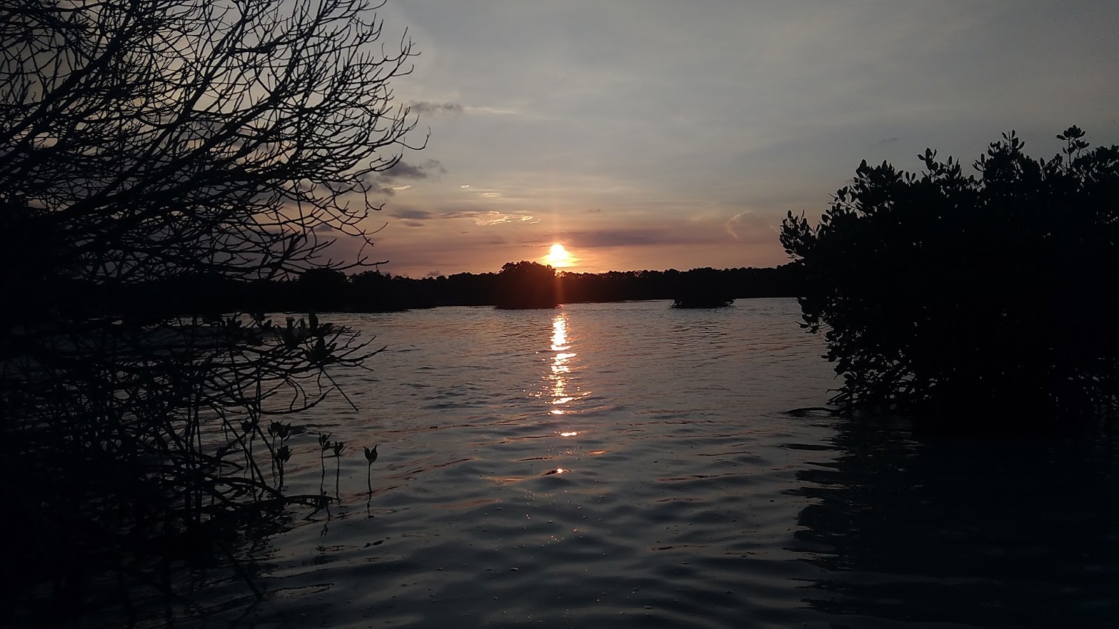 Di Virgin Beach kami mencoba naik perahu melintasi hutan bakau sambil menanti matahari terbenam. Amboooi .... Saya banyak berharap, baterai ponsel saya tidak habis di saat-saat indah itu... Sungguh menyesal tidak membawa power bank. Sesekali kami turun dari perahu dan nyemplung ke air karena mau foto-foto.